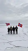 På Hopen ble nasjonaldagen feiret tradisjon trå med et lite tog på fire personer. Foto: Hopen Meteorologiske stasjon 17. mai på Bjørnøya, Hopen og i Ny-Ålesund Publisert 17.05.2025 - 18:30 Sist oppdatert 17.05.2025 - 21:56 nyheter 17. mai nasjonaldagen