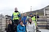 Emil Johnsen (14, t.v, bak), Joanna Eriksson (16), Astrid Andersen (14) og Simen Strand (16, t.v, foran) er blant dem som har stått på i to dager for å rydde i enhver av byens kriker og kroker. Her sammen med ungdomsklubbleder Shane Roseth og barne- og ungdomskoordinator Lene Gjervik, som er arrangører.