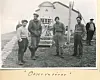 Personellet som utførte de meteorologiske observasjonene og driften på Hopen sesongen 1951–1952 besto av en bestyrer, to telegrafister og en stuert.Foto: Meteorologisk institutt