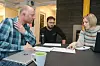 STIKKPRØVER: Store Norskes HMS-sjef Oddmund Rønning (til venstre) får blant annet se arbeidskontrakter, lønnsbetingelser og timelister når han besøker Svalbard Bygg. Daglig leder Trond Håvelsrud og administrasjonssekretær Kristin Valkvæ Haugland forklarer og viser fram.