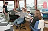 Arkitekt Jon Reksten (t.v.) kom til Ingvild Vatn og LPO sitt arkitektkontor i Longyearbyen i sommer. Det gjorde også arkitekt Elisa Grindeland og byggingeniør Tone Bjerknes.