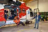 Mannskapet på Sysselmannens redningshelikopter øver jevnlig. Tirsdag hadde de heiseøvelser inne i hangaren på flyplassen. Fra venstre systemoperatør Olav Bjørke, heiseoperatør Eldar Rotihaug, anestesilege Predip Sundaram i selen og redningsmann Inge Skjevik med tauet.