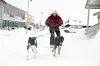 Willy Martinsen beskriver livet som fint etter at han ble ung pensjonist og flyttet til Svalbard. Hundene Brøgger (t.v.) og Kaiser sørger for både transport og selskap i byen og i terrenget.