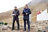 Talte: Russlands nye generalkonsul Andrey Chemerilo (t.h.) var til stede sammen med flere representanter fra Barentsburg. Sammen med tolk Stein-Magne Wiik fra Sysselmesteren holdt han tale for de oppmøtte.
