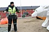 AVSTAND: Lekeplassinspektør Ole Christian Wiig måler for å se om det er god nok avstand til klatreapparatet (isbjørnen) og steinkanten. – Hvis et barn faller ned, skal det ikke treffe steinene, sier han.
