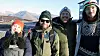 Longyearbyen fylles opp med hiphopere, gatekunstnere og internasjonale DJs. – Vi skal fylle gatene med kaos og hiphopkultur, forteller de. Fra venstre: Ania Helmobakk med Ginza «The tour dog», Bjørn-Tore Hilmarsen, Jarl-Tore Helmobakk og Jedzrej Borkiewicz. Sistnevnte er også kjent som gatekunstneren Jed. Onsdag kan du se ham i aksjon utenfor kulturhuset.
