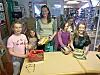 Siste lørdag med bibliotek på Lompensenteret, med twist for hver lånte bok, var populært. Sunna Aamodt Pedersen (9, f.v.), Ylva Maria Ekstedt Lystrup (5), Maja-Stina Ekstedt, Sigrid Schei Fledsberg (8), Elida Krogstad (10) og Kjersti Hammer (9).