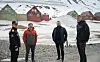 Etterlyser folkeskikk: Entreprenørene som er i byen for å skredsikre på Sukkertoppen har blitt møtt med manglende folkeskikk fra Longyearbyens befolkning. Longyearbyen lokalstyre, som er byggherre for skredsikringen, ber folk om å rette klager mot dem heller enn å gå på enkeltpersoner. Fra venstre: Konstituert sysselmann Sølvi Elvedahl, lokalstyreleder Arild Olsen, daglig leder i DS Entreprenør Oddmund Sletten og Jens Ivar Hauge i Helitrans.