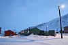 FEBRUAR: I vinter ble det kjent at disse to boligene, rødt og grønt hus, i Vei 226 ville være de første som ble revet. Rivingen skulle starte i mai, fikk Svalbardposten vite i februar. Nå, fire måneder senere, er saneringen utsatt med minst to måneder. Foto: Morten Fredheim Solberg