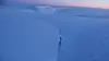 SMELTEVANNSKANAL: Sprekken i Ulvebreen har tidligere vært dekket av snø. Nå er det mindre snø, men sprekken kan være vanskelig å oppdage når du kommer kjørende på skuter. I bakgrunnen til høyre ses Dunérbukta på østkysten.