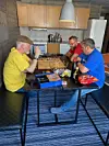 Alle deltakerne hadde hver sin t-skjorte med farger etter brikkene. Roar Sivertsen i gult, Jostein Meen i rødt, Espen Jønsberg Andersen i blått, og Snorre Bjorhusdal, som ikke er ned i bildet, i sort.