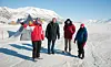 Optimister: Forskningen på reservoaret i Adventdalen viser gode resultater, og Unis CO2 Lab er klare for å pumpe CO2 ned i bakken. Her er daglig leder Ragnhild Rønneberg (t.v.), professorene Alvar Braathen og Snorre Olaussen, og Cathy Braathen i selskapet.