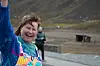 Helene McCarthy var en av arrangørene av Longyearbyen pride. Hun gikk fremst i toget. Foto: Line Nagell Ylvisåker En fargerik og stolt Longyearby Publisert 30.08.2025 - 17:29 Sist oppdatert 30.08.2025 - 18:11 nyheter
