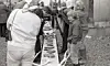 Utenfor «Huset» hadde en gruppe barn i 1974 satt opp sin egen butikk. Der solgte de selvplukkede fossiler og reinsdyrgevir til turistene, med stor suksess.Foto: Herlev Alvheim/på utlån fra Svalbard museum