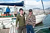 Ny og gammel: 23-åringen Andreas Rebnor Olsen (t.v.) har avtale med Hans (t.h.) og Marianne Lund om å fangste i Farmhamna denne sesongen. I fjor sommer ble han med familien Lund ut til fangstsasjonen.