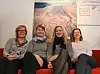 HAR OVERSIKTEN: Disse damene utgjør Svalbard Science Forum. Kirsten Broch Mathisen (lengst t.v.) fra Forskningsrådet i Oslo leder forumet, mens (f.v.) Karoline Bælum, Helén Johanne Andersen og Margrethe Keyser har kontorer i Longyearbyen.