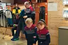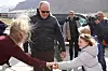 Hege Anita Eilertsen (t.v) ved Svalbard Museum tok imot Fyrsten og barna da de ankom forskningsparken.