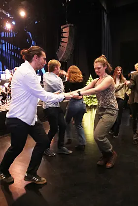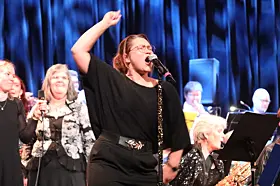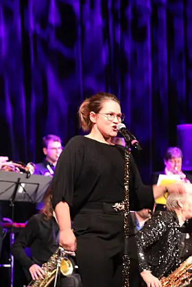 Lillian Risvaag sang Bohemian Rhapsody og var konferansier under storbandaftenen. Foto: Martin Kristiansen For en dansekveld det ble med storbandet og alle vennene Publisert 25.11.2024 - 10:30 Sist oppdatert 26.11.2024 - 09:40 fritidsaktiviteter kultur musikk nyheter