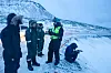 DEMONSTRASJON: Da Justisdepartementet var på besøk denne uka, fikk de demonstrert hvor effektive skredhundene var til å finne noen i et snøskred. Fra venstre står Øystein Mortensen, leder i Justisdepartementets polaravdeling, Thor Kleppen Sættem, statssekretær i Justisdepartementet, Ole Jakob Malmo, sysselmannsoverbetjent og sysselmannsførstebetjent Leif A. Lyngset Nilsen. Helt til høyre står TV2s fotograf.