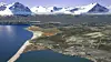 Brandalpynten: Det nye geodesianlegget sees her lagt inn på et planfotografi ved Brandallaguna ytterst på Brandalpynten. Det gamle anlegget sees i bakgrunnen (t.v.) ved flystripa. Ny-Ålesund ligger et par-tre kilometer unna, til venstre utenfor bildet.