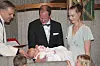 Tirill (5 mnd) døpes her av prest Odd Bjarne, sammen med pappa Bjørn-Arild Schancke, mamma Ida Tveiten og ikke minst storesøster Milda som følger med. Foto: Kjetil Windsland Her døpes Tirill i vann fra Østkysten Publisert 11.04.2025 - 00:00 Sist oppdatert 12.04.2025 - 15:30 nyheter