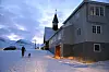 Den blir nok ingen solstråler som treffer gamle sykehustrappa 8. mars i år. Grunnet været som er ventet, er markeringen av solas tilbakekomst flyttet inn i kirken. Foto: Kåre M. Hansen Ingen sol på soldagen – flytter markeringen inn Publisert 06.03.2026 - 15:14 soldagen værmelding mørketid longyearbyen hurtigruten nyheter
