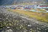 I midten av bildet vises ankerpunktene som er fundamentert dypt ned i fjellsiden i Lia. Om et par uker begynner arbeidet med å sette opp fem meter høye støtteforbygninger på fundamentene. Installasjonene skal låse av snømasser i fjellsiden og på den måten forhindre at skred utløses.