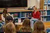 Hele ungdomsskolen og 7. klasse var samlet på biblioteket onsdag for å høre på intervjuet av Kathrine Nedrejord, som var ledet av 9. klasse. Foto: Tare Reklev Øverbø – Jeg har drømt om å bli invitert Publisert 10.09.2025 - 19:20 nyheter