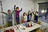 Femåringene fra Kullungen barnehage viser stolt fram julelenkene de lagde i løpet av et kvarter langt pressemøte. Fra venstre: Linus Laursen Bertelsen, Tiril Søreide Jordbrudal, Viktoria Risstad, Vlasa Vidmar Shcerbina og Lev Shestov.