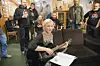 Høy stemning mellom norske og polske beboere i Arktis. Randi Margrethe Mathiasdatter Larsen tok gitaren fatt og det ble allsang fra både polakker og nordmenn. Bak f.v. Adam Aziewicz, Krysztof Gadbiec, Magdalena Bloch, Wojciech Mateja, Piotr Tepokowski og Edward Taszyca.