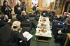 Det var ingen ting å utsette på stemningen da Sysselmannens delegasjon besøkte den polske stasjonen i Hornsund. På sofaen i midten rett fram sitter Arild Lyssand, som man med selvsyn kan konstatere har «en god dag på jobb».