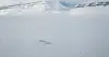 Råka skal være rundt 20 meter lang og fire meter bred og gå på langs av fjorden. De to svarte prikkene på isen er merkingen gjort av guiden. I bakgrunnen ligger inngangen til Fuhrmeisterdalen, også kalt Murdoch.