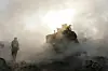 Stoffer i røyken fra steintipp-brannen i Barentsburg inneholder kreftframkallende steinkulltjære. Norske myndigheter skal gjøre ytterligere undersøkelser av røyken. Her under slukningsarbeidet i mars i fjor. Tippen brenner fortsatt.