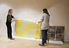 Kurator Lise Dahl ved Nordnorsk kustmuseum og formidler Rakel Huglen pakket denne uken ut et 20-talls verker som stilles ut i Kunsthall Svalbard fra i morgen. Her er det Alf Salos «Soltegn» som kommer ut av plasten. Ved siden av står Francois Auguste Biards bilde «Kamp med isbjørner». Blant de andre kunstnerne i utstillingen er Peder Balke, Anna-Eva Bergman og David Hockney.