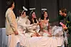 Storsatsing: Mozarts «Tryllefløyten» er en ellevill blanding av opera, musikal og komedie som lørdag kveld beruset et fullsatt kulturhus. Ivar Magnus Sandeve (f.v.) som prins Tamino, englekoret Tuva Sverkeli, Tine Westby Thorstad og Mia Ekeblad Eggenfellner og Jørgen Magnus Haslum som den lekne fuglefangeren Papageno i grønn FK-dress.