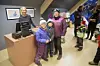 Berit Oldernes (t.h.) og barna Ingeborg og Eivind på handletur i Snøstjerna. Innehaverne Nina Lines (bak kassen) og Maren Bekkeheien forteller om en oppløftende åpning med godt salg.