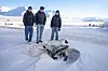 Eieren av denne nedsnødde skuteren lar ikke elevene Ailo Leander Våtvik (14), Filip Lockert (14) og Åsne Seljeskog (15) rydde den bort. Foto: Tare Reklev Øverbø – Folk må få opp øynene for hvor ille det faktisk er Publisert 28.03.2026 - 05:00 longyearbyen skole miljøfare ungdomsprosjekt vrakpant skutervrak nyheter