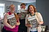 Anja Charlotte M. Hansen, Tare Reklev Øverbø og Wenche Sørensen er strålende fornøyd for årets sommer-gruve avis. Redaktør Line Nagell Ylvisåker, journalist Kåre M. Hansen og Susanna Westgaard på salg og marked har allerede tatt en velfortjent ferie.