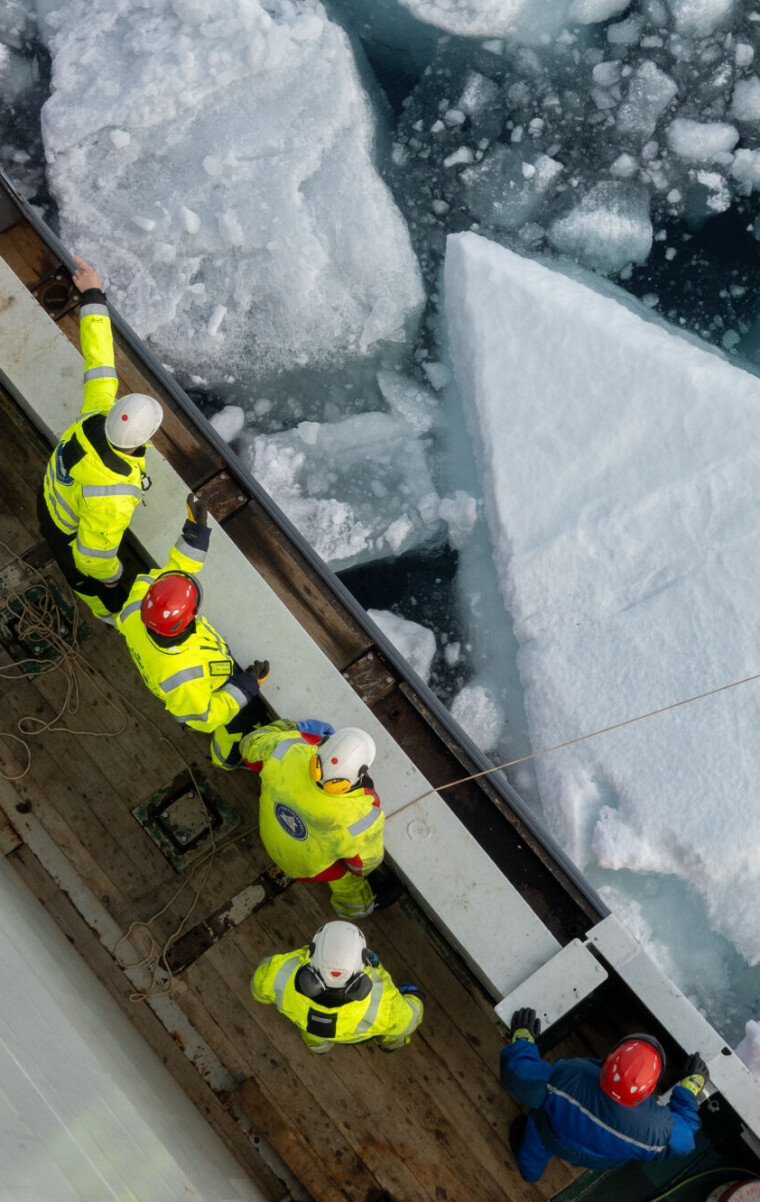 «Kronprins Haakon» er her dypt inne i isen i Polhavet