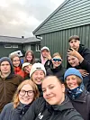 Russekullet i Longyearbyen er klare til innsats: Foran f.v. foran Sarine Masterbakk, Tine Westby Thorstad og Sigrid Vilja Andersen navn. I midten f.v. Sandro Aamodt Pedersen, Sigrid Haugejorden, Inger Johanne Aasland Moen, Pia Bronken Eidesen, Tobias Fjerdingøy og Niklas Lorentse. Bak f.v. Live Strømshoved, Hedda Lie og Lasse Husdal.