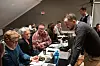 Diskusjon i en av pausene i lokalstyremøtet i desember 2023, der politikerne første gang vedtok energigebyr for 2024. Vedaket ble senere opphevet av Justisdepartementet. Onsdag var det nytt møte for å sette energigebyrer. Thomas Neuhold (Ap, t.v.), Solveig Oftedal (Ap), Svein Jonny Albrigtsen (Ap) og Jo Gytri (H, t.h.).