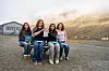 Rebekka Kverme (f.v.), Samantha Aspen, Ysabelle Provido Dela Cruz og Astrid H. Helgesen (alle 14 eller snart 14) skal intervjue forfatter Kathrine Nedrejord. Foto: Tare Reklev Øverbø Skal intervjue prisvinnende forfatter Publisert 09.09.2025 - 19:07 nyheter