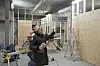 Statsbyggs prosjektleder, Bente Næverdal viser fram verkstedhallen som blant annet skal inneholde to grafiske presser. De to atelierene i bakkant vil få flott utsikt til Hiorthfjellet.
