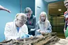 Spennende med skjelett Søstrene Emma (t.h.) og Hedda Gutvik Einarsen seg mens arkeolog Birgitte Fjørtoft undersøker skjelettet. Christopher Engås Publisert 14.10.2016 - 07:00 Denne artikkelen er mer enn fem år gammel. nyheter