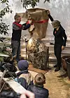 Fossilsteinen ble pakket ut av direktør ved Naturhistorisk museum Tone Lindheim og seksjonssjef Tor Carlsen i Botanisk hage. Nå er den en del av den permanente utstillingen i Botanisk hage som forteller trærnes utviklingshistorie.