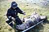 Her blir den uheldige isbjørnen befridd