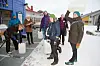 Kristin Furu Grøtting fyller opp dunkene for Jostein Lyngøy, Randi Margrethe Mathiasdatter Larsen, Espen Rotevatn, Katrine Apeland og Silvia Galli. I bakgrunnen følger aksjonleder Anne Lise Sandvik med.
