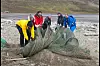 Espen Klungseth Rotevatn (MDG), Helga Bårdsdatter Kristiansen, lokalstyreleder Arild Olsen (Ap) Trine Krystad fra Visit Svalbard, driftingeniør Rasmus Bøckman fra Longyearbyen lokalstyre og Kjetil Figenschou (H) samarbeider om å få opp en gammel fiskenot.
